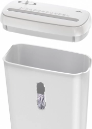 Datorită capacității de până la 5 foi de 80 g/m² într-o singură trecere și lățimii de alimentare de 220 mm, procesezi cu ușurință documentele standard fără pregătiri complicate. Funcția Auto Start pornește automat distrugerea la introducerea hârtiei, iar Reverse ajută în caz de blocaj pentru o funcționare lină, fără întreruperi inutile.