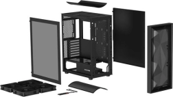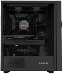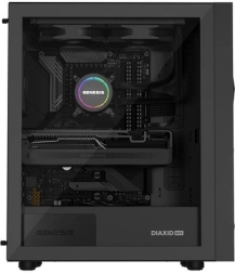 GENESIS Diaxid 605F este o carcasă midi tower modernă, concepută pentru pasionații de performanță și răcire. Trei ventilatoare de admisie în față și două de evacuare în spate asigură presiune pozitivă și o circulație excelentă a aerului, în timp ce mesh‑ul frontal fin și filtrele magnetice de sus și jos țin praful sub control. Carcasa este compatibilă cu răcitoare AIO de până la 420 mm în față și oferă spațiu suficient pentru plăci grafice lungi și coolere tower înalte.