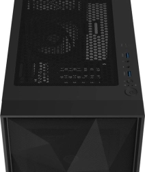 Panoul superior oferă conectivitate rapidă, inclusiv USB‑C Gen 2 (10 Gb/s) și două USB‑A 3.2 Gen 1, plus porturi separate de 3,5 mm pentru căști și microfon. Datorită capacului pentru sursă, garniturilor de cauciuc și traseelor bine gândite pentru cabluri, asamblarea este curată, ușoară și estetică. Carcasa suportă plăci de bază ATX/microATX/mini‑ITX și oferă stocare flexibilă pentru SSD și HDD.