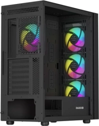 Trei intake frontale și un exhaust posterior asigură presiune pozitivă și temperaturi excelente chiar și sub sarcină. Iluminarea ARGB poate fi sincronizată prin placa de bază.