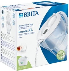 Cana filtrantă BRITA Marella XL, îndrăgită, cu capacitate de 3,5 l, oferă zilnic apă proaspătă și gustoasă, fără miros de clor. Datorită filtrului MAXTRA PRO Pure Performance cu tehnologie MicroFlow, îmbunătățește gustul băuturilor și preparatelor, reduce formarea depunerilor de calcar și aduce economii în comparație cu apa îmbuteliată. Funcțiile practice precum umplerea ușoară și BRITA Memo pentru reamintirea schimbării filtrului o fac alegerea ideală pentru orice bucătărie.