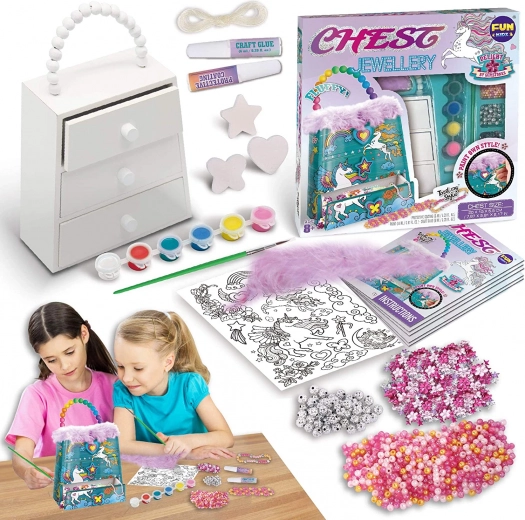 Realizează o cutie de bijuterii originală din lemn cu dimensiuni de 20x15x5,5 cm folosind acest set care include tot ce este necesar. Creativitatea nu cunoaște limite, astfel că o poți decora după propria fantezie. Mărgele colorate și alte ornamente vor adăuga unicitate creației tale.