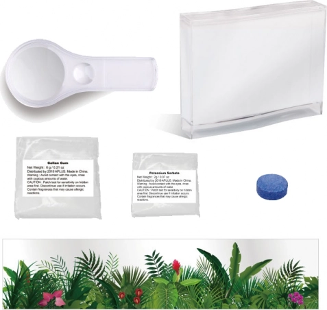Pachetul conține tot ce este necesar pentru a începe aventura: acvariu, gel nutritiv, lupă, autocolant cu plante și ghid. Recomandat pentru copii de la 8 ani.
