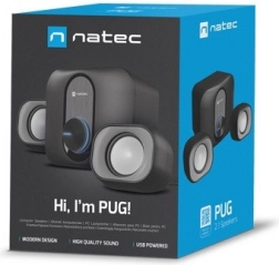 Difuzoarele Natec PUG nu necesită drivere sau adaptoare și încep să funcționeze imediat după conectarea la USB și jack de 3,5 mm. Controlul volumului este ușor accesibil datorită unui controler pe subwoofer, completat cu iluminare pentru o mai bună vizibilitate chiar și noaptea.