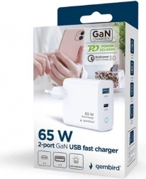 Încărcător universal cu 2 porturi și putere de 65 W, reîncarcă în mod fiabil telefoanele, căștile și ultrabook-urile. Tehnologia modernă GaN asigură eficiență ridicată, încălzire redusă și dimensiuni compacte, astfel încât încărcătorul încape ușor în buzunar sau în geanta de călătorie.