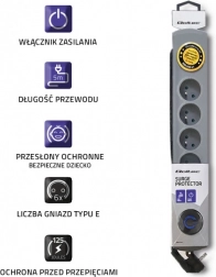 Bara se va potrivi perfect cu aparatele, lângă care o plasezi, datorită designului său gri clasic. Proiectată conform celor mai recente tendințe, combină eleganța cu simplitatea utilizării. Obține mai mult spațiu - soluția sub forma posibilității de a înfășura cablul în jurul barei reduce excesul acestuia. În plus, este disponibilă și posibilitatea de montare pe mobilă, ceea ce facilitează organizarea cablurilor pe podea.
