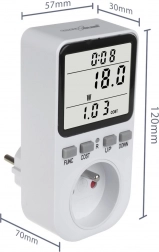 Acest măsurător este echipat cu patru butoane mari pentru operare ușoară și o alarmă de suprasarcină care te avertizează când sarcina depășește limita de siguranță de 3680W. Ecranul luminos permite citirea simplă a datelor precum cantitatea de energie consumată și costurile acesteia, ceea ce ajută la monitorizarea și controlul eficient al cheltuielilor tale cu electricitatea.