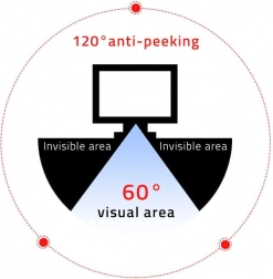 Cun o tehnologie avansată de microjaluzie, asigură lizibilitatea dintr-o perspectivă directă într-un unghi de 60 de grade, în timp ce vizualizarea laterală este complet ilizibilă. La un unghi de 30 de grade, imaginea se întunecă, garantând astfel confidențialitate maximă.