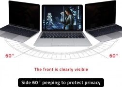 Filtrul Qoltec folosește tehnologia microjaluzelor pentru a asigura confidențialitatea. Imaginea clară și luminosă se întunecă la vizualizarea din lateral.