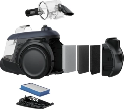 Sistemul avansat de filtrare HEPA captează până la 99,99% dintre particulele fine de 0,3 µm – de la praf și acarieni până la alergeni – ajutând astfel la menținerea unui mediu igienic în casă. Golirea recipientului se face în doi pași simpli, fără a ridica praful.