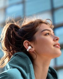 Confort și stabilitate neîntrecute Căștile Soundcore sunt dotate cu un design inovator cu cleme care asigură un confort respirabil. Sunt ușor de fixat pe urechi, perfecte pentru utilizare alături de ochelari și alte accesorii.