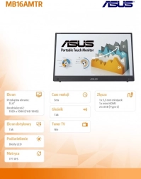 Acest monitor tactil de 16" ușor și elegant este ideal pentru lucru și divertisment în afara biroului. Imagine clară în Full HD, unghiuri largi de vizualizare ale tehnologiei IPS și o suprafață tactilă capacitivă fluidă care ușurează prezentările, notițele și multitaskingul. Un singur cablu USB‑C asigură atât alimentarea, cât și semnalul video, iar micro‑HDMI oferă compatibilitate extinsă.