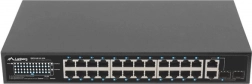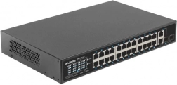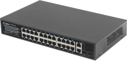 24 de porturi PoE+ 10/100 Mb/s alimentează și transmit date pe un singur cablu. Bugetul real de 250 W permite alimentarea simultană a până la 16 dispozitive 802.3af (15 W/port) sau 8 dispozitive 802.3at (30 W/port).