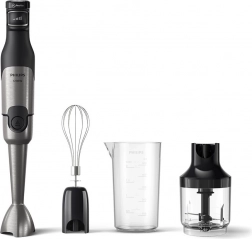 Pachetul include un tocător compact de 0,5 l pentru ierburi, nuci sau carne, un tel pentru baterea cremelor și sosurilor și un pahar gradat pentru dozare precisă. Datorită cuplării rapide a accesoriilor printr-un singur buton, schimbarea este rapidă și igienică, iar construcția compactă facilitează depozitarea.