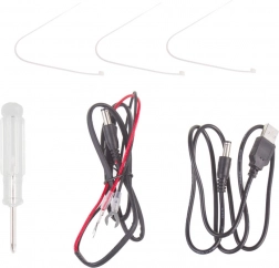 Dispozitivul poate fi alimentat de la acumulatorul auto, patru baterii AA sau prin cablu USB.