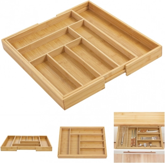 Datorită compartimentării inteligente, este ideal nu doar pentru tacâmuri, ci și pentru linguri de gătit, curățătoare, teluri sau mici accesorii de bucătărie. La fel de bine își găsește utilitatea în birou pentru rechizite sau în baie pentru cosmetice.
