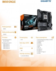 Placa de bază Gigabyte B650 EAGLE este proiectată pentru a susține procesoarele AMD RYZEN 7000 și mai noi, oferindu-vă performanță fără egal pentru aplicațiile și jocurile dumneavoastră. Cu soluția digitală VRM 12+2+2 faze obtineți un aport stabil de energie.