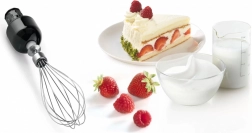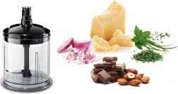 Pachetul include și accesoriu pentru tocător și accesoriu pentru batere, datorită cărora puteți crea o gamă largă de preparate delicioase. De la sosuri fine la frișcă perfect bătută – totul este posibil cu acest blender multifuncțional.