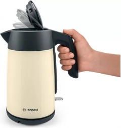 Bucurați-vă de confort cu acest fierbător Bosch, care datorită indicatorului nivelului apei vă permite să fierbeți exact cantitatea de apă de care aveți nevoie. Forma ergonomică a fierbătorului asigură turnare ușoară fără vărsări, lucru pe care îl veți aprecia în utilizarea de zi cu zi.