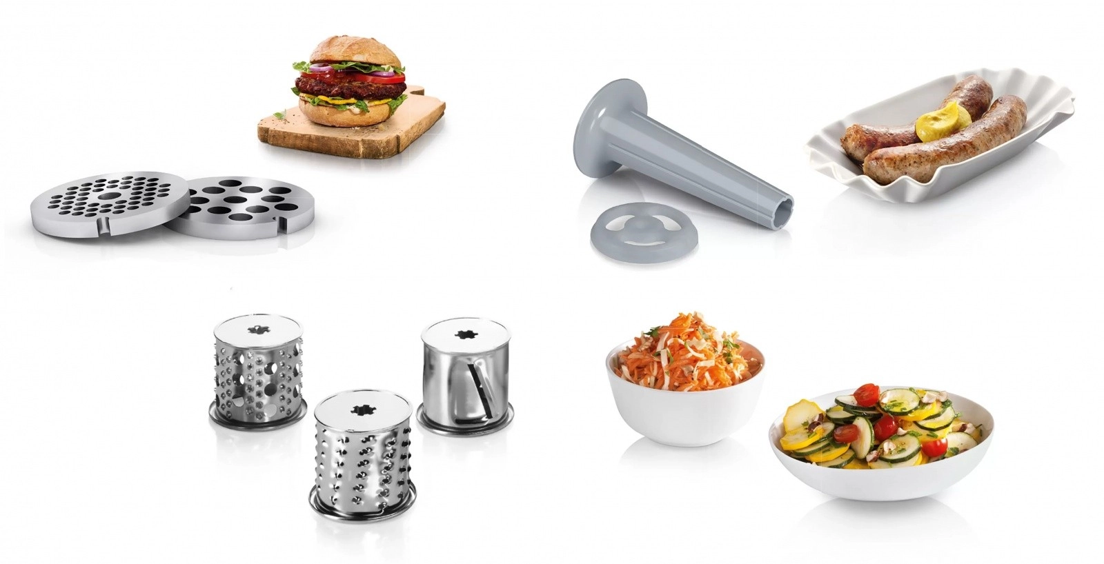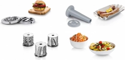 În afară de măcinarea cărnii, cu ajutorul măcinătorului puteți răzui și tăia o varietate de ingrediente precum legume, brânzeturi, fructe sau ciocolată.