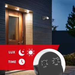 Acest senzor de mișcare este proiectat pentru control automat al iluminatului și altor dispozitive electrice. Datorită protecției impermeabile IP65, este ideal pentru utilizare în grădină, lângă casă sau pe terasă. Detectează mișcarea cu precizie mare și distinge între zi și noapte (datorită senzorului crepuscular încorporat).