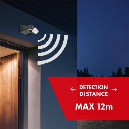 Senzorul are un unghi de detecție de 180° și funcționează atât ziua, cât și noaptea datorită senzorului crepuscular sensibil.