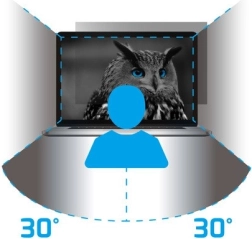 Filtrul de confidențialitate pentru ecran este conceput pentru a oferi protecție maximă informațiilor dumneavoastră sensibile atunci când utilizați calculatorul. Datorită tehnologiei avansate a microjaluzelelor, se asigură că conținutul ecranului este clar vizibil doar pentru utilizatorul direct în fața lui. Privit dintr-un unghi de 30° sau mai mult, imaginea devine neagră, făcând datele dumneavoastră invizibile pentru alții.