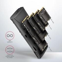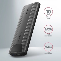 Carcasa AXAGON se distinge printr-o interfață rapidă USB 3.2 Gen 2 cu o viteză de transfer de până la 10Gb/s, suport pentru funcții moderne precum UASP, TRIM și posibilitatea de citire a informațiilor S.M.A.R.T.. Este potrivită pentru diferite lungimi ale plăcilor SSD - 30, 42, 60 și 80 mm.