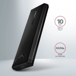 Bucurați-vă de avantajele interfeței rapide USB 3.2 Gen 2, care permite transferul de date cu o viteză de până la 10Gb/s. Această carcasă suportă funcții moderne, cum ar fi UASP, TRIM și posibilitatea de a monitoriza starea discului cu ajutorul S.M.A.R.T.<4/strong>.<4/p> Avantajul principal este posibilitatea de a instala carduri SSD în trei lungimi diferite - 42, 60 și 80 mm, fără limitări de capacitate. Instalarea ușoară cu ajutorul unui unic șurub simplifică înlocuirea SSD-urilor, ceea ce facilitează sarcini precum migrarea datelor sau testarea.<4/p> Carcasa metalică elegantă, de culoare neagră, cu structură de aluminiu, oferă o excelentă răcire și previne limitarea termică a performanței. Perna termoconductoare suplimentară ajută la menținerea temperaturii optime a discului, prelungind astfel durata sa de viață.<4/p><4/div>Specificații<4/h2>