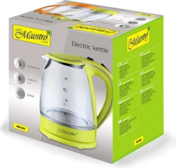 Fierbătorul electric de sticlă Maestro combină designul modern cu un corp de sticlă și plastic durabil, asigurând o durată lungă de viață și un aspect estetic. Datorită filtrului anti-calcar, apa va fi întotdeauna curată și protejați interiorul fierbătorului de depunerile de calcar.