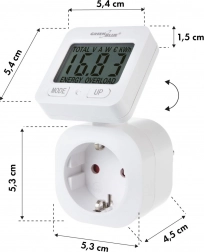 Operarea este intuitivă – ai la dispoziție 2 butoane funcționale pentru comutare rapidă a modurilor. Afișajul rotativ, ușor de citit asigură vizibilitate excelentă a datelor în orice poziție. Dispozitivul suportă sarcini de până la 3680 W, astfel măsoară fără probleme și echipamente mai solicitante precum mașina de spălat, uscătorul sau PC-ul.