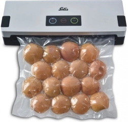 SOLIS Vac Smart vă ajută să reduceți risipa și să păstrați mâncarea gustoasă pentru mai mult timp. Vidați role și pungi cu lățimea de 30 cm sau alimente în recipiente de vidare închise (prin furtunaș opțional). Alimentele ambalate etanș își păstrează mai mult aroma, gustul și textura și sunt ideale pentru sous‑vide gătit.