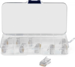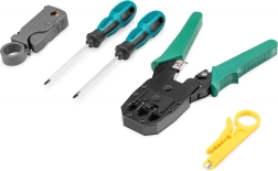 Cleste de sertizat durabil, cu mânere ergonomice, asigură terminarea fermă și fiabilă a cablurilor de rețea, incluzând tăiere și dezizolare integrate.