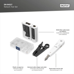 Datorită designului ergonomic al uneltelor și testerului de cabluri intuitiv, identificați ușor conexiuni greșite, fire întrerupte sau perechi încrucișate. Setul economisește timp și costuri de service – aveți totul la îndemână într-un singur kit.