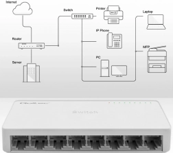 Comutatorul de rețea Qoltec, fiabil și performant, cu 8 porturi RJ45, asigură o conexiune stabilă și rapidă pentru rețeaua de acasă sau de la birou. Datorită vitezei gigabit de până la 1000 Mbps, suportului IEEE 802.3x și instalării Plug & Play, oferă un transfer de date fluent fără configurări inutile. Porturile ecranate cu 8 pini, indicarea prin LED și disiparea eficientă a căldurii garantează funcționarea fiabilă chiar și la sarcină ridicată.