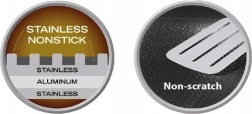 Stratul exterior din inox magnetic 430 permite utilizarea pe gaz, electric, vitroceramică și inducție. Tigaia este potrivită și pentru mașina de spălat vase.