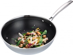 Căutați o tigaie versatilă pentru prăjire intensivă, sotare și specialități asiatice? Acest wok MAESTRO de 30 cm oferă performanță profesională în bucătăria de acasă și în cea profesională. Construcția trilayer (inox 430 – miez de aluminiu – inox 304) transmite căldura de la bază până la margini, astfel încât ingredientele se gătesc rapid și uniform.