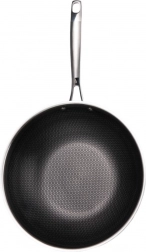 Textura tip fagure protejează suprafața antiaderentă împotriva deteriorării și permite utilizarea ustensilelor metalice. Peretele gros de 5 mm și înălțimea de 9,5 cm asigură stabilitate, acumulare de căldură și amestecare comodă. Mânerul ergonomic din inox rămâne rece în timpul gătitului, iar orificiul de la capăt facilitează agățarea.