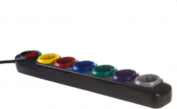 Fiecare dintre cele șase prize are o altă culoare pentru identificarea simplă a dispozitivelor conectate – ordine în cabluri chiar și la utilizare intensă.
