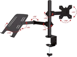 Datorită opțiunii de înclinare de până la 45° și rotație de 180°, utilizatorul poate seta poziția ideală pentru monitorul și laptopul său.