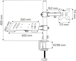 Montajul pe standardul VESA (75x75 mm și 100x100 mm) garantează o instalare ușoară a majorității monitoarelor comune. Construcția robustă din oțel cu acoperire de pulbere asigură că suportul va fi stabil și durabil. În plus, sistemul integrat de management al cablurilor menține spațiul de lucru curat și organizat.