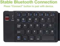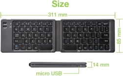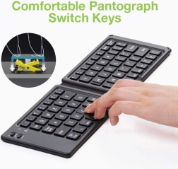 Tastatură pliabilă Bluetooth V3.0: dimensiunea standard crește performanța și confortul la tastare; datorită greutății reduse și dimensiunilor compacte în stare pliată, o puteți lua ușor oriunde și o puteți folosi simplu cu smartphone-uri și tablete. Tehnologia Bluetooth asigură o conexiune wireless pe o rază de 10 metri.