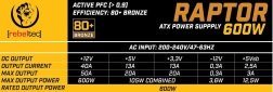 Sursa de alimentare Raptor impresionează piața prin rezervă de performanță de vârf datorită designului avansat și componentelor de înaltă calitate. Pe railul +12V generează eficient 600W pentru alimentarea CPU-ului și a plăcii grafice, în timp ce pe celelalte linii oferă performanță extinsă până la un total de 721W.