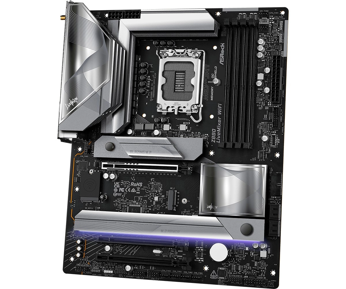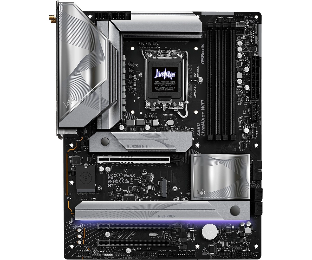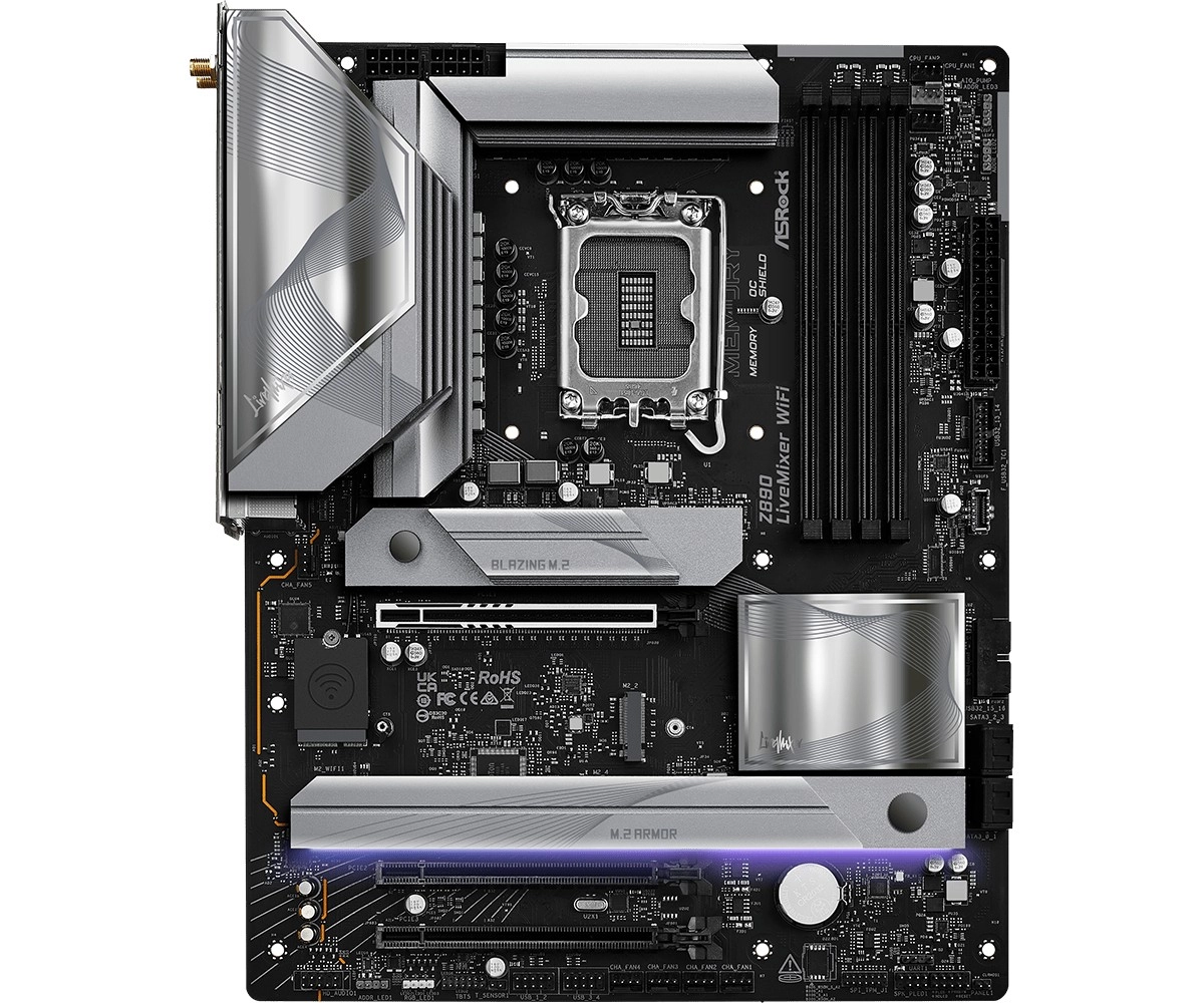 Seria LiveMixer este concepută pentru creatorii moderni. Placa ASRock Z890 LiveMixer WiFi combină o etapă de alimentare robustă 18+1+1+1+1 (80 A SPS pentru VCore+GT+SA) cu opțiuni de extindere de top: PCIe 5.0 x16 pentru cele mai noi plăci video, trei sloturi M.2 inclusiv Blazing M.2 PCIe Gen5 x4 și o pereche de Thunderbolt 4 Type‑C pentru conectarea ultra-rapidă a perifericelor și a afișajelor.