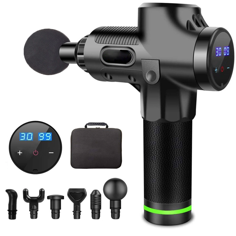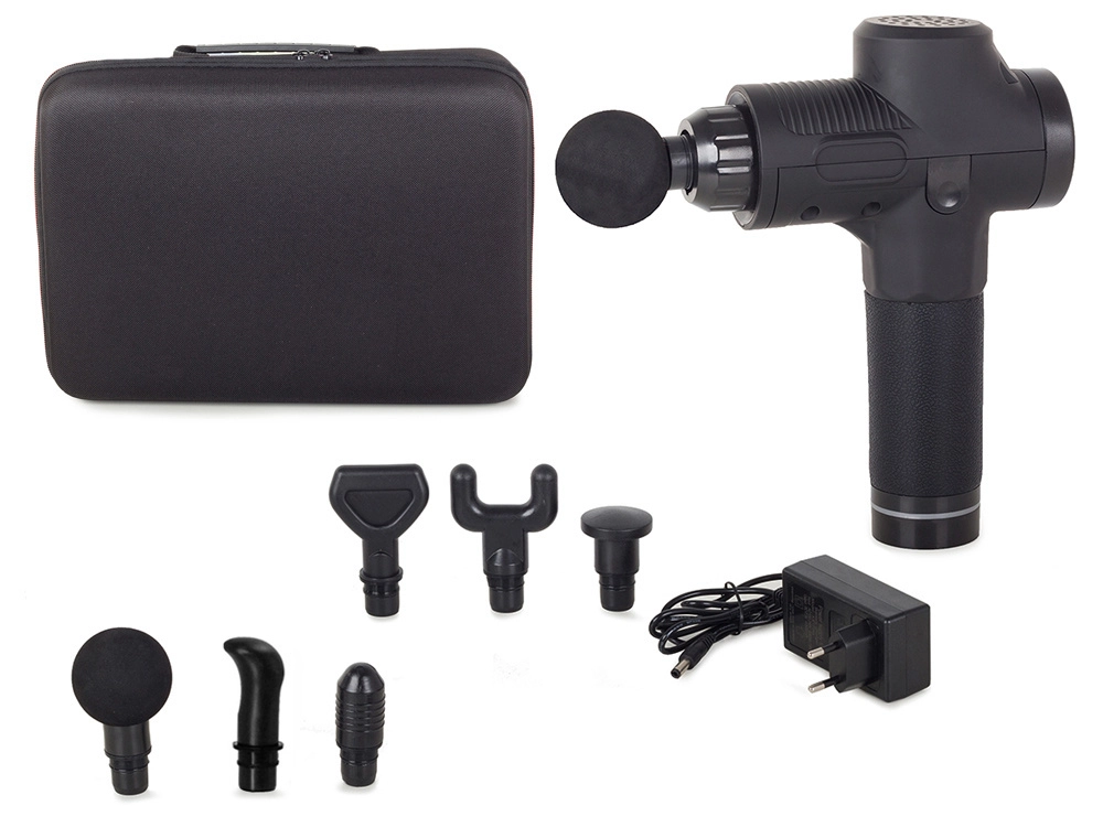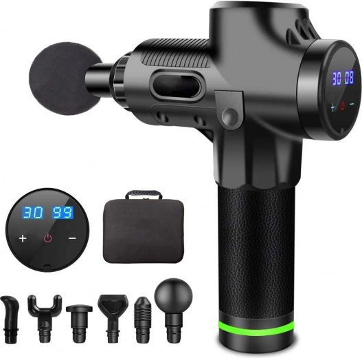 Pistol de masaj wireless puternic, cu afișaj LCD, 30 niveluri de intensitate și un set de 6 capete interschimbabile, oferă rapid alinare pentru rigiditate și dureri musculare. Datorită funcționării silențioase, mânerului anti-alunecare și autonomiei de până la 3–3,5 ore, este ideal după antrenament și pentru regenerarea zilnică. Include husă de transport.