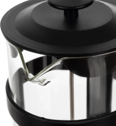 Mânerul rezistent nu se încălzește, iar sticla transparentă permite controlul facil al intensității infuziei în timpul preparării.