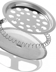 Sita metalică cu arc reține în mod fiabil zațul și frunzele de ceai, asigurând o băutură curată, plină și echilibrată.