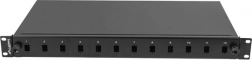 Acest patch panel optic extractibil 19'' 1U este o alegere ideală pentru managementul profesionist al fibrelor optice în dulapuri de date și telecomunicații. Construcția robustă din tablă de oțel, vopsită în câmp electrostatic, de culoare neagră, asigură o durată de viață îndelungată, iar porturile numerotate și orificiile pentru șuruburile adaptorilor simplifică montajul și orientarea în instalație. Urechile ajustabile permit poziționarea precisă în rack, conform nevoilor dvs.