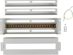 Distribuitor de tensiune în dimensiune standard de 19" și înălțime 3U. Este echipat cu șină DIN TS-35, capac, organizator de cabluri, orificii pentru cabluri și împământare, care îndeplinesc toate cerințele.