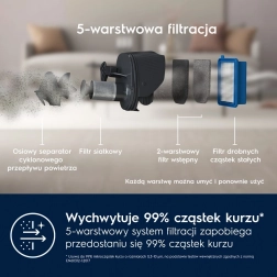 *Elimină până la 99% din microparticulele de praf cu dimensiuni de 0,3–10 µm pe baza testelor interne conform EN60312-1:2017.